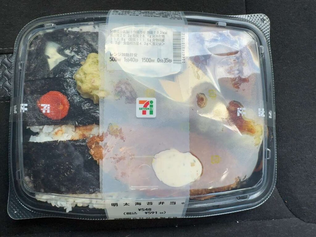 おかずの品目は、海苔と明太子を合わせて7品目。米が高騰する前と比べるとご飯の量が減りスパゲティや焼きそばの量でボリュームをカバーするような感じ。これはセブンイレブンだけでなくどこのコンビニの弁当もこんな感じになっている印象です